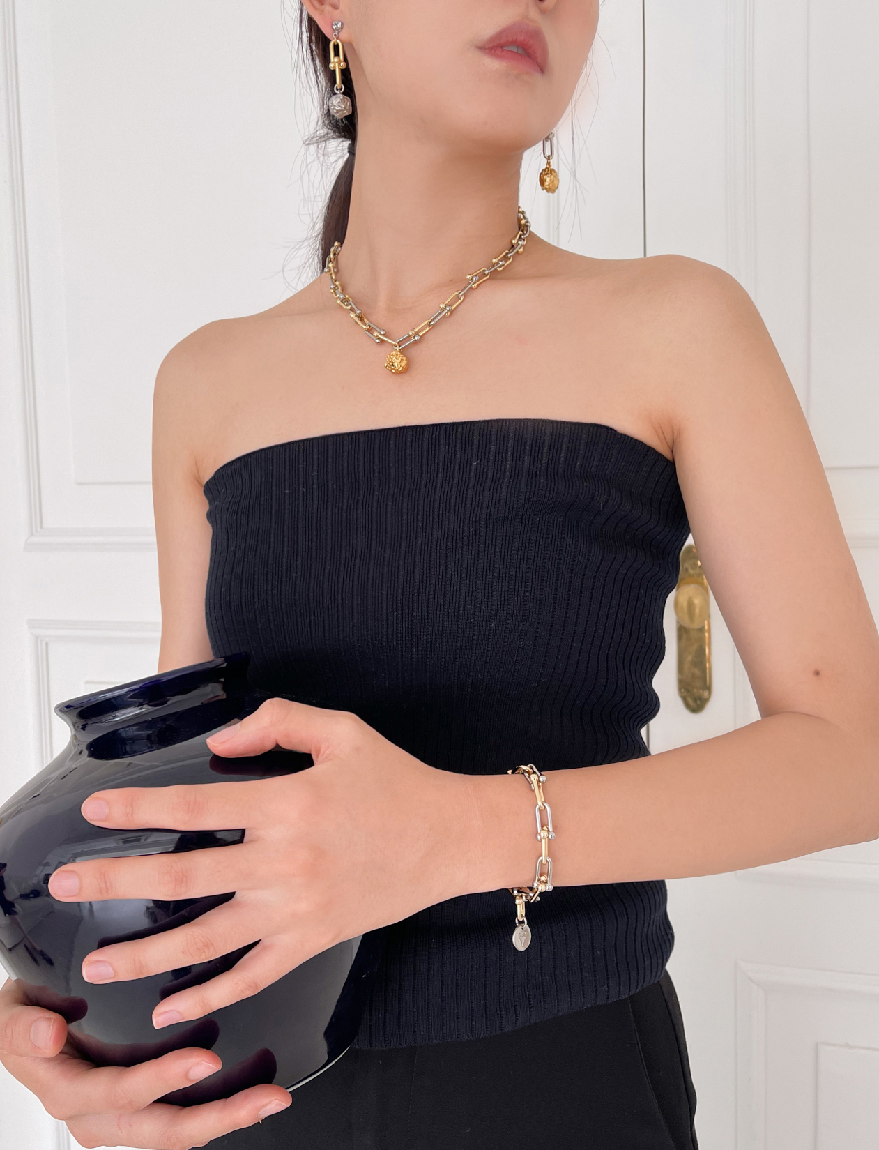 * 소재: 18K Gold Plated Brass + Nickel Semi Gloss Plated Brass